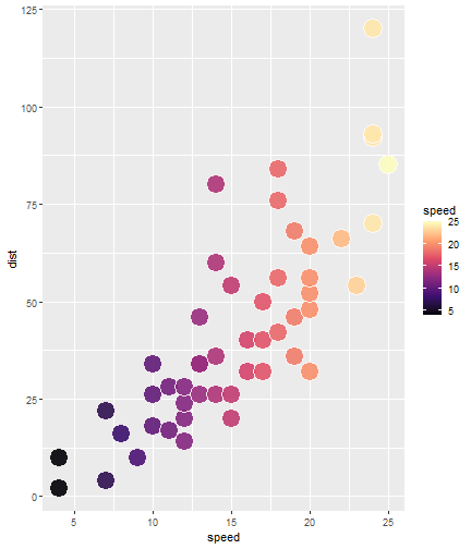 class: center, middle, inverse, title-slide # A minimal flipbook ## With flipbookr and xaringan ### Phanikumar S tata --- # Hi! -- This 'minimal flipbook' template has a couple of classic examples to get you building your first flipbooks! -- flipbooks are code-movies. The frames of the movies are slides. Here we use the R package {xaringan} to create a remark.js slideshow. -- Slide breaks are indicated with `---` (be careful trailing white space is not allowed) -- flipbookr's `chunk_reveal()` disassembles a single code chunk and creates the "build" of multiple partial-code chunks on different slides (the --- is automatically generated for you too). -- We use `chunk_reveal()` it 'inline', not in a code chunk. -- Let's start! --- class: inverse, middle, center # First up: classic flipbook, using defaults to walk through code pipeline <!-- get a flipbook version of the my_cars code chunk - pauses are where parentheses are balanced --> --- count: false .panel1-my_cars-auto[ ```r *cars ``` ] .panel2-my_cars-auto[ ``` speed dist 1 4 2 2 4 10 3 7 4 4 7 22 5 8 16 6 9 10 7 10 18 8 10 26 9 10 34 10 11 17 11 11 28 12 12 14 13 12 20 14 12 24 15 12 28 16 13 26 17 13 34 18 13 34 19 13 46 20 14 26 21 14 36 22 14 60 23 14 80 24 15 20 25 15 26 26 15 54 27 16 32 28 16 40 29 17 32 30 17 40 31 17 50 32 18 42 33 18 56 34 18 76 35 18 84 36 19 36 37 19 46 38 19 68 39 20 32 40 20 48 41 20 52 42 20 56 43 20 64 44 22 66 45 23 54 46 24 70 47 24 92 48 24 93 49 24 120 50 25 85 ``` ] --- count: false .panel1-my_cars-auto[ ```r cars %>% * filter(speed > 4) ``` ] .panel2-my_cars-auto[ ``` speed dist 1 7 4 2 7 22 3 8 16 4 9 10 5 10 18 6 10 26 7 10 34 8 11 17 9 11 28 10 12 14 11 12 20 12 12 24 13 12 28 14 13 26 15 13 34 16 13 34 17 13 46 18 14 26 19 14 36 20 14 60 21 14 80 22 15 20 23 15 26 24 15 54 25 16 32 26 16 40 27 17 32 28 17 40 29 17 50 30 18 42 31 18 56 32 18 76 33 18 84 34 19 36 35 19 46 36 19 68 37 20 32 38 20 48 39 20 52 40 20 56 41 20 64 42 22 66 43 23 54 44 24 70 45 24 92 46 24 93 47 24 120 48 25 85 ``` ] --- count: false .panel1-my_cars-auto[ ```r cars %>% filter(speed > 4) %>% * ggplot() ``` ] .panel2-my_cars-auto[ <!-- --> ] --- count: false .panel1-my_cars-auto[ ```r cars %>% filter(speed > 4) %>% ggplot() + * aes(x = speed) ``` ] .panel2-my_cars-auto[ <!-- --> ] --- count: false .panel1-my_cars-auto[ ```r cars %>% filter(speed > 4) %>% ggplot() + aes(x = speed) + * aes(y = dist) ``` ] .panel2-my_cars-auto[ <!-- --> ] --- count: false .panel1-my_cars-auto[ ```r cars %>% filter(speed > 4) %>% ggplot() + aes(x = speed) + aes(y = dist) + * geom_point( * alpha = .8, * color = "blue" * ) ``` ] .panel2-my_cars-auto[ <!-- --> ] --- count: false .panel1-my_cars-auto[ ```r cars %>% filter(speed > 4) %>% ggplot() + aes(x = speed) + aes(y = dist) + geom_point( alpha = .8, color = "blue" ) + * aes(size = speed) ``` ] .panel2-my_cars-auto[ <!-- --> ] <style> .panel1-my_cars-auto { color: black; width: 38.6060606060606%; hight: 32%; float: left; padding-left: 1%; font-size: 80% } .panel2-my_cars-auto { color: black; width: 59.3939393939394%; hight: 32%; float: left; padding-left: 1%; font-size: 80% } .panel3-my_cars-auto { color: black; width: NA%; hight: 33%; float: left; padding-left: 1%; font-size: 80% } </style> --- class: inverse, center, middle # Next up: refer to same chunk, but use user defined breakpoints, and display output only <!-- get another flipbook version of the my_cars code chunk, this time at the defined breaks and only showing output --> --- count: false ### user defined break! using #BREAK message <!-- --> --- count: false ### user defined break! using #BREAK message <!-- --> --- count: false ### user defined break! using #BREAK message <!-- --> <style> .panel1-my_cars-user { color: black; width: 99%; hight: 32%; float: left; padding-left: 1%; font-size: 80% } .panel2-my_cars-user { color: black; width: NA%; hight: 32%; float: left; padding-left: 1%; font-size: 80% } .panel3-my_cars-user { color: black; width: NA%; hight: 33%; float: left; padding-left: 1%; font-size: 80% } </style> --- class: inverse, center, middle # Next up: cycle through different lines of code <!-- get flipbook that rotates through lines, my_fill --> --- count: false ### cycle through lines of code marked #ROTATE .panel1-my_fill-rotate[ ```r ggplot(data = cars) + aes(x = speed) + aes(y = dist) + geom_point(size = 8, shape = 21, alpha = .9, color = "snow") + aes(fill = speed) + * scale_fill_viridis_c(option = "magma") ``` ] .panel2-my_fill-rotate[ <!-- --> ] --- count: false ### cycle through lines of code marked #ROTATE .panel1-my_fill-rotate[ ```r ggplot(data = cars) + aes(x = speed) + aes(y = dist) + geom_point(size = 8, shape = 21, alpha = .9, color = "snow") + aes(fill = speed) + * scale_fill_viridis_c(option = "cividis") ``` ] .panel2-my_fill-rotate[ <!-- --> ] --- count: false ### cycle through lines of code marked #ROTATE .panel1-my_fill-rotate[ ```r ggplot(data = cars) + aes(x = speed) + aes(y = dist) + geom_point(size = 8, shape = 21, alpha = .9, color = "snow") + aes(fill = speed) + * scale_fill_viridis_c(option = "plasma") ``` ] .panel2-my_fill-rotate[ <!-- --> ] <style> .panel1-my_fill-rotate { color: black; width: 49%; hight: 32%; float: left; padding-left: 1%; font-size: 80% } .panel2-my_fill-rotate { color: black; width: 49%; hight: 32%; float: left; padding-left: 1%; font-size: 80% } .panel3-my_fill-rotate { color: black; width: NA%; hight: 33%; float: left; padding-left: 1%; font-size: 80% } </style> --- class: inverse, center, middle # Next up: look at multiple realizations of same code <!-- get flipbook that shows multiple realizations of the same code --> --- count: false ### see multiple realizations of code .panel1-cars_multi-5[ ```r library(ggplot2) names(cars) cars %>% sample_frac(size = 1, replace = TRUE) %>% ggplot( ) + aes(x = speed) + aes(y = dist) + geom_count( alpha = .7, color = "blue", size = 4 ) + geom_smooth(method = lm, se = FALSE) + coord_cartesian(xlim = range(cars$speed), ylim = range(car
